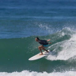 Ce surf Fish montĂ© en Twin est la planche parfaite pour les gabarits lĂ©gers dans des vagues jusque 1m50 (hauteur d’Ă©paule) . Son volume de 35 l vous garanti suffisamment de portance pour un take off facile mĂȘme lorsque la vague ne creuse pas . Si les conditions deviennent plus puissante la planche accroche encore trĂšs bien.